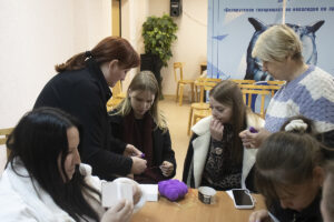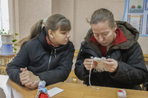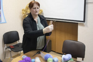 Ведущая мастер-класса Тимошенко Светлана, руководитель народной студии декоративно-прикладного творчества «Чараўніцы», познакомила участников с техникой работы с нитью, подробно, шаг за шагом, объясняла каждое действие: как свернуть основу для туловища, как зафиксировать нить, чтобы кукла держала форму, где располагаются ручки и как завязать платочек. Ассистенты помогали тем, кому было сложно справиться самостоятельно.
